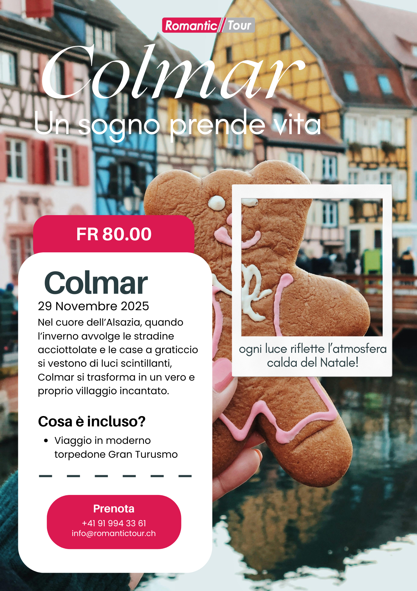 Nel cuore dell’Alsazia, quando l’inverno avvolge le stradine acciottolate e le case a graticcio si vestono di luci scintillanti, Colmar si trasforma in un vero e proprio villaggio incantato. Il suo mercatino di Natale, tra i più romantici d’Europa, è un invito a perdersi tra bancarelle di artigianato locale, dolci profumi di vin brûlé e spezie, e melodie natalizie che accarezzano l’anima. Passeggiare per Colmar durante l’Avvento è come entrare in una fiaba: ogni angolo racconta una storia, ogni luce riflette l’atmosfera calda e autentica di un Natale d’altri tempi!