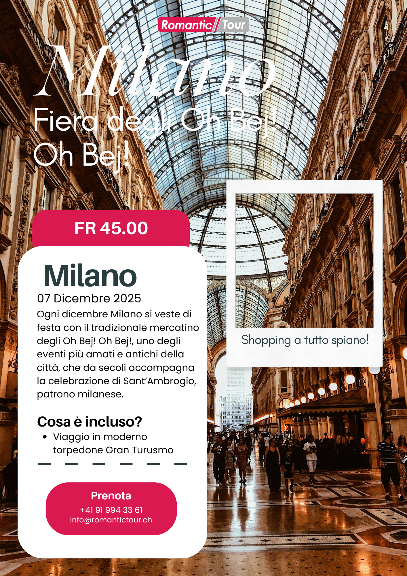 Ogni dicembre Milano si veste di festa con il tradizionale mercatino degli Oh Bej! Oh Bej!, uno degli eventi più amati e antichi della città, che da secoli accompagna la celebrazione di Sant’Ambrogio, patrono milanese. Passeggiando attorno al Castello Sforzesco, tra profumi di caldarroste e vin brulé, si scopre un’atmosfera vivace e autentica: oltre 300 espositori propongono artigianato, addobbi natalizi, dolci tipici e prodotti della tradizione lombarda. Luci soffuse, bancarelle colorate e il fascino storico del centro rendono questo mercatino un’esperienza unica, dove il Natale si respira in ogni angolo. È l’occasione perfetta per acquistare regali originali, assaggiare specialità locali e vivere l’anima più genuina di Milano.